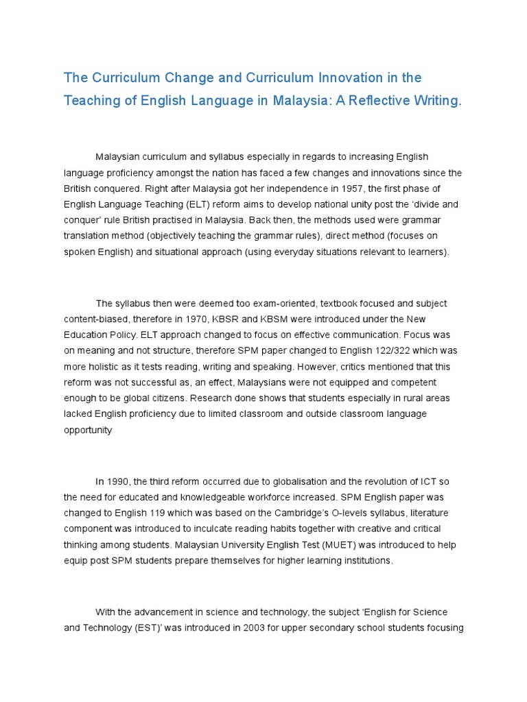 Curriculum Change And Curriculum Innovation In The Teaching Of English Language In Malaysia Curriculum English Language