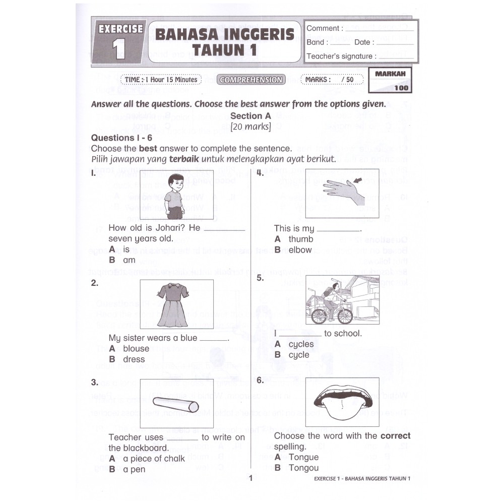 Baru Kertas Soalan Bi Tahun 1 English Exam Papers 1st Grade Math Worksheets Kindergarten Worksheets