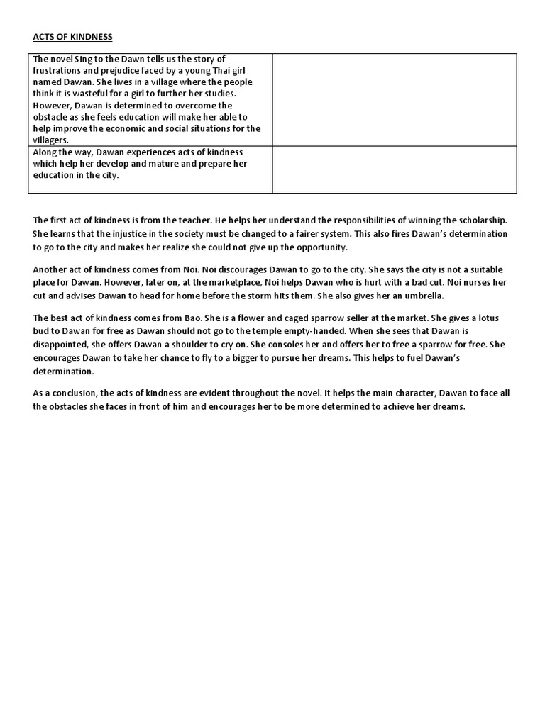 Acts Of Kindness Sing To The Dawn Fiction Literature