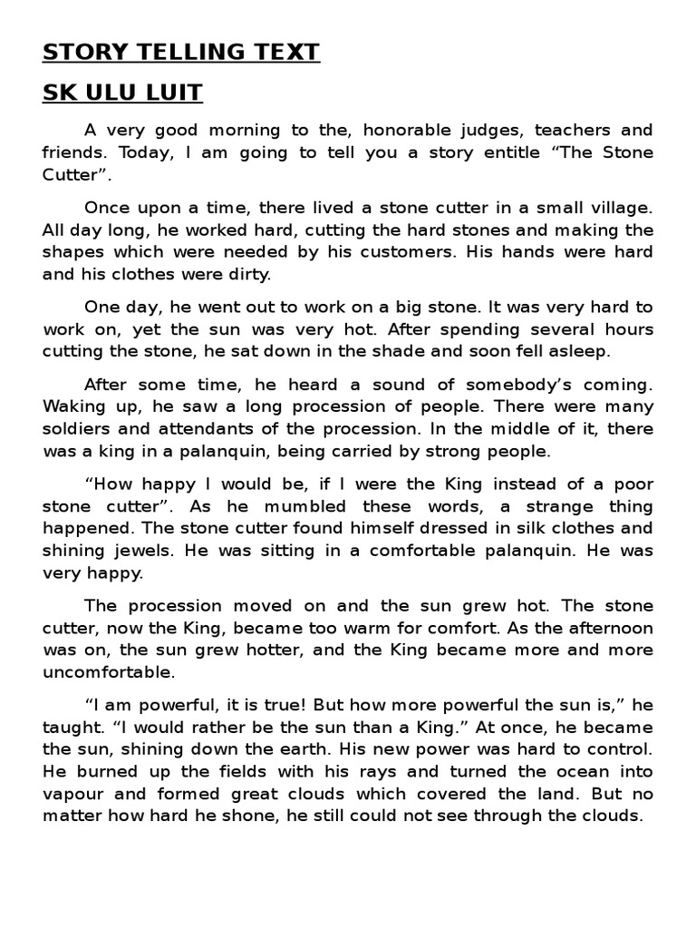 Story Telling The Floating Stone Good Morning Honourable Judges Teachers And Friends I Am Irfan Yusoff From Sk Menunggui Today The Title Of My Story Is The Floating Stone