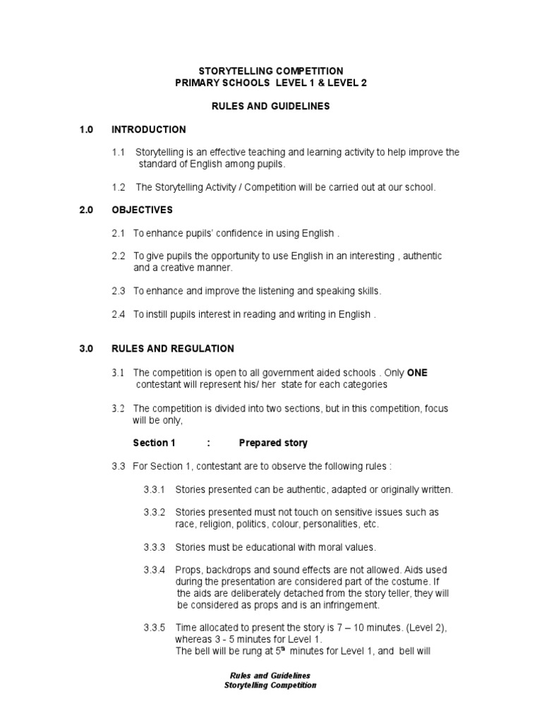 Storytelling Competition Rules N Regulations Storytelling Cognition