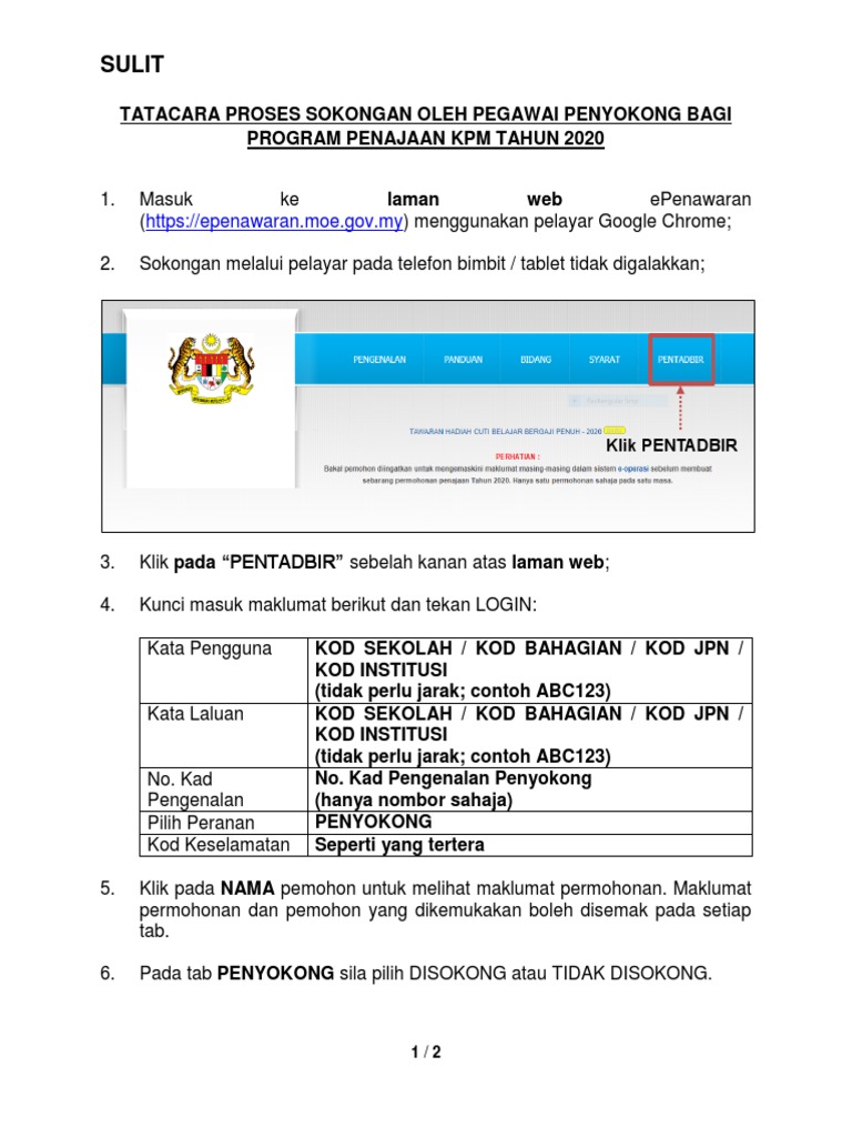 Tatacara Sokongan Pegawai Penyokong 1