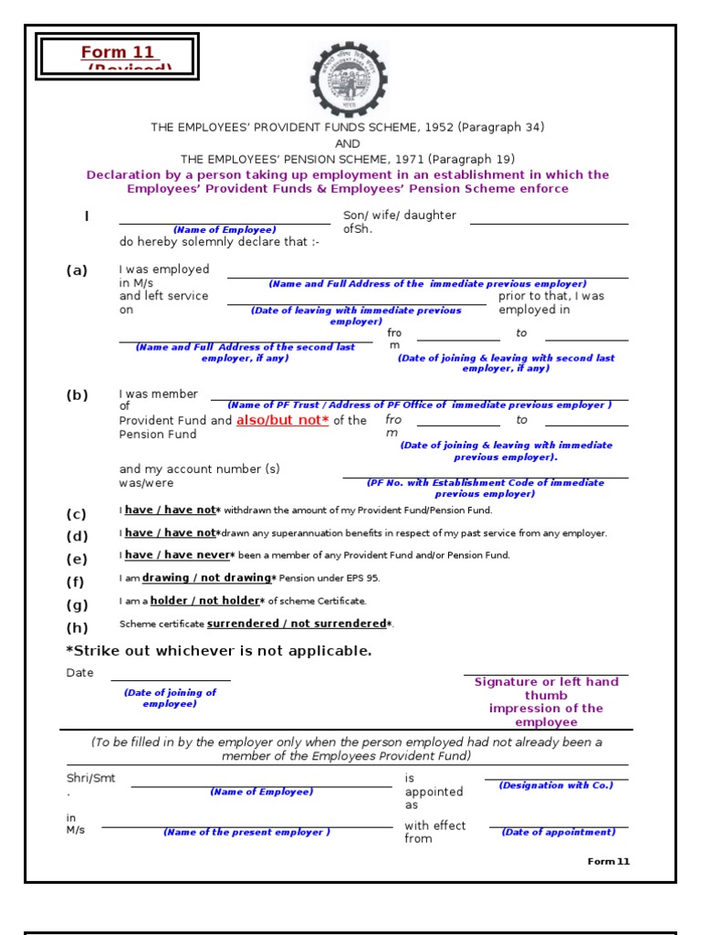What Is Form 11 Under The Epf Act Quora