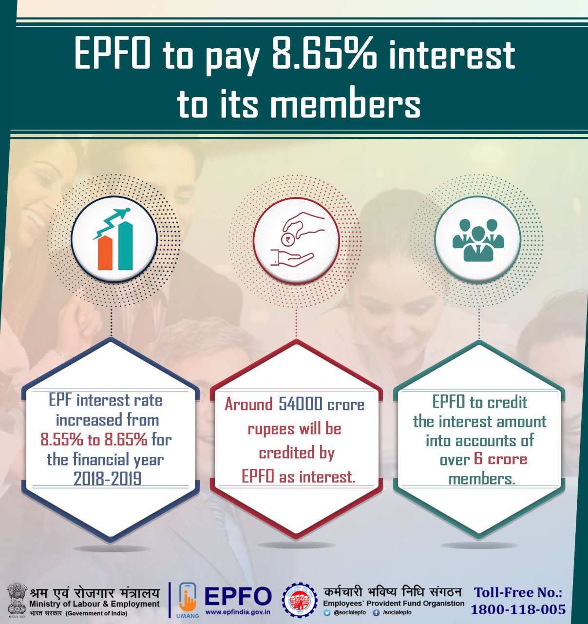 Epfo On Twitter The Rate Of Interest On Employees Provident Fund Epf Increased To 8 65 For The Financial Year 2018 19 Epfo