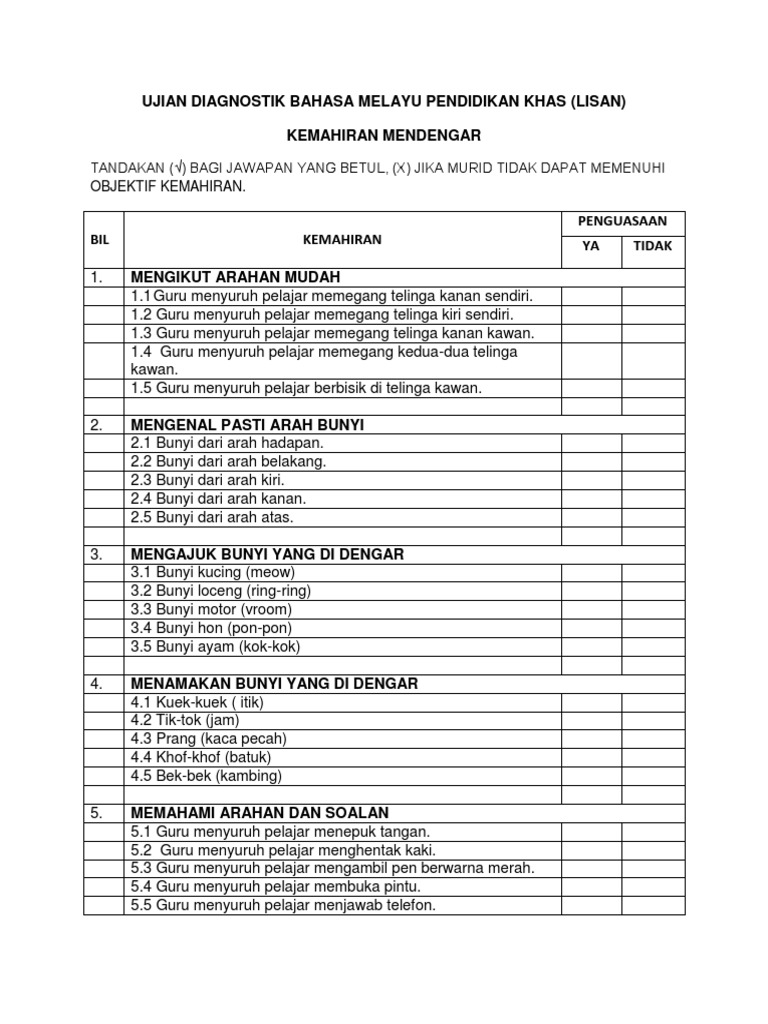Ujian Diagnostik Bahasa Melayu Pendidikan Khas Kemahiran Lisan