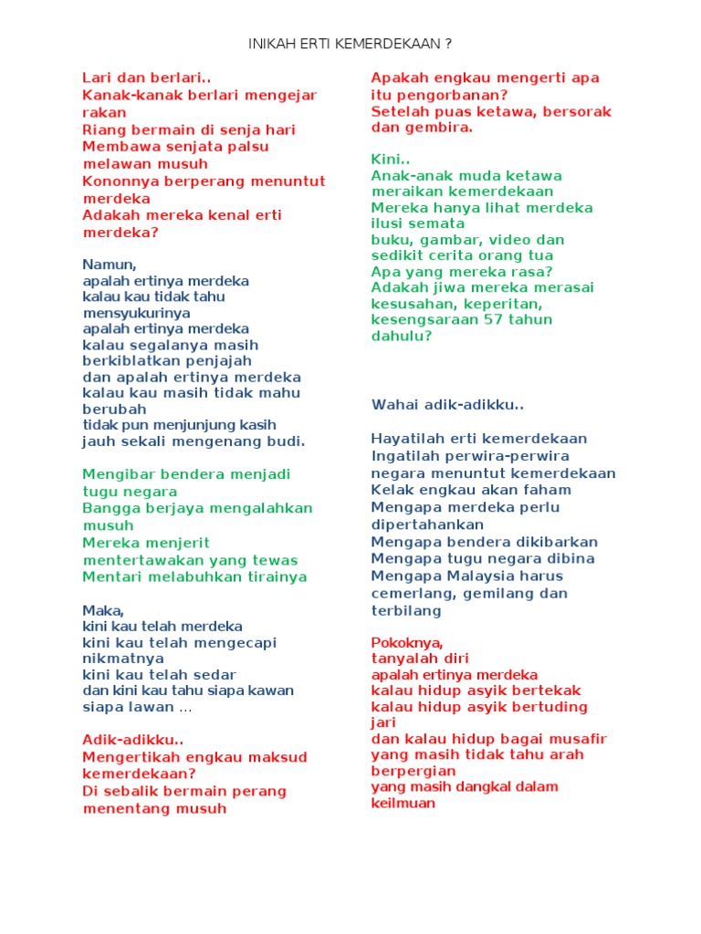 Erti Kemerdekaan Sajak Kemerdekaan Kanak Kanak