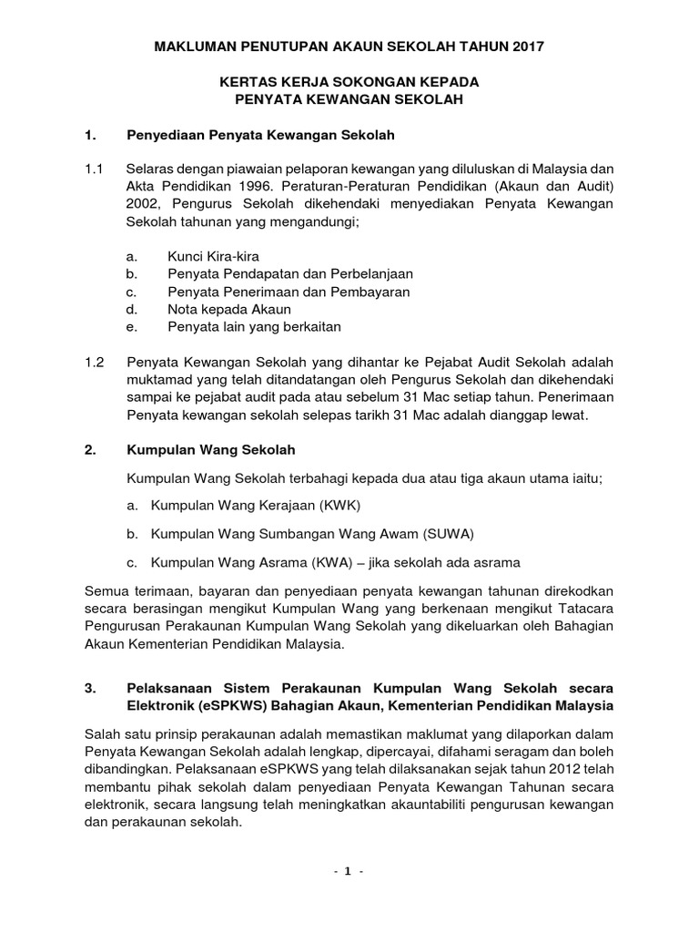 Taklimat Penutupan Dan Penyediaan Penyata Kewangan Akaun Sekolah Sistem Espkws Tatacara Kewangan Pdf Download Gratis