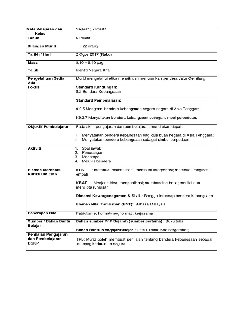 Sejarah Tahun 5 Identiti Negara Bendera Kebangsaan