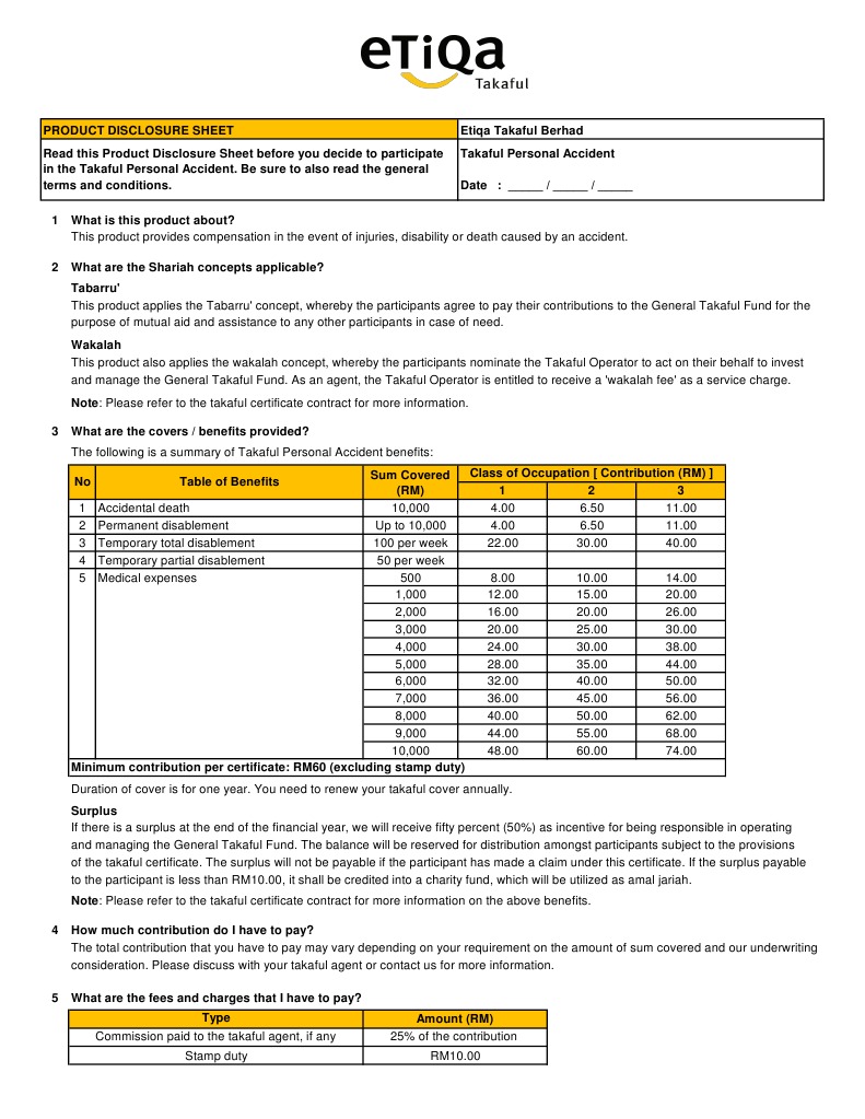 Product Disclosure Sheet Etiqa Takaful Berhad Read Digi