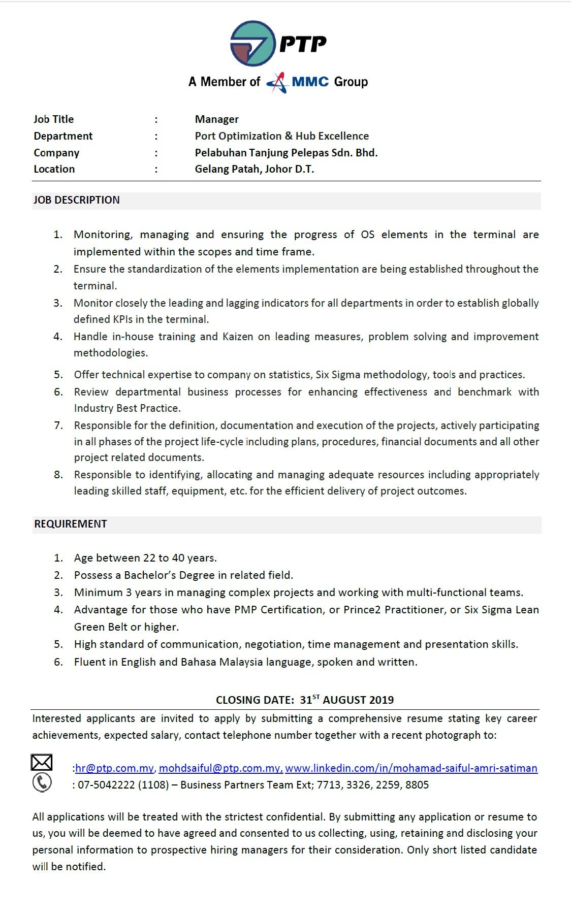 Port Tanjung Pelepas Sur Twitter Calling All Potential Candidates Job Title Manager Department Port Optimization Hub Excellence Come And Join Us And Build Your Career With One Of