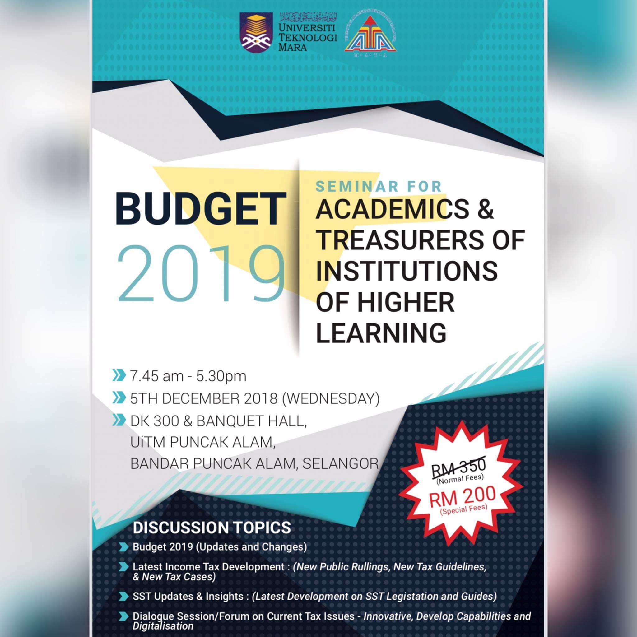 Accountancy Uitm Official On Twitter Budget 2019 Seminar For Academics Treasurers Of Institutions Of Higher Learning 5th December 2018 7 45 Am 5 30pm Dk300 Faculty Of Accountancy Banquet Hall Uitm Puncak