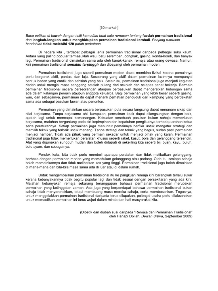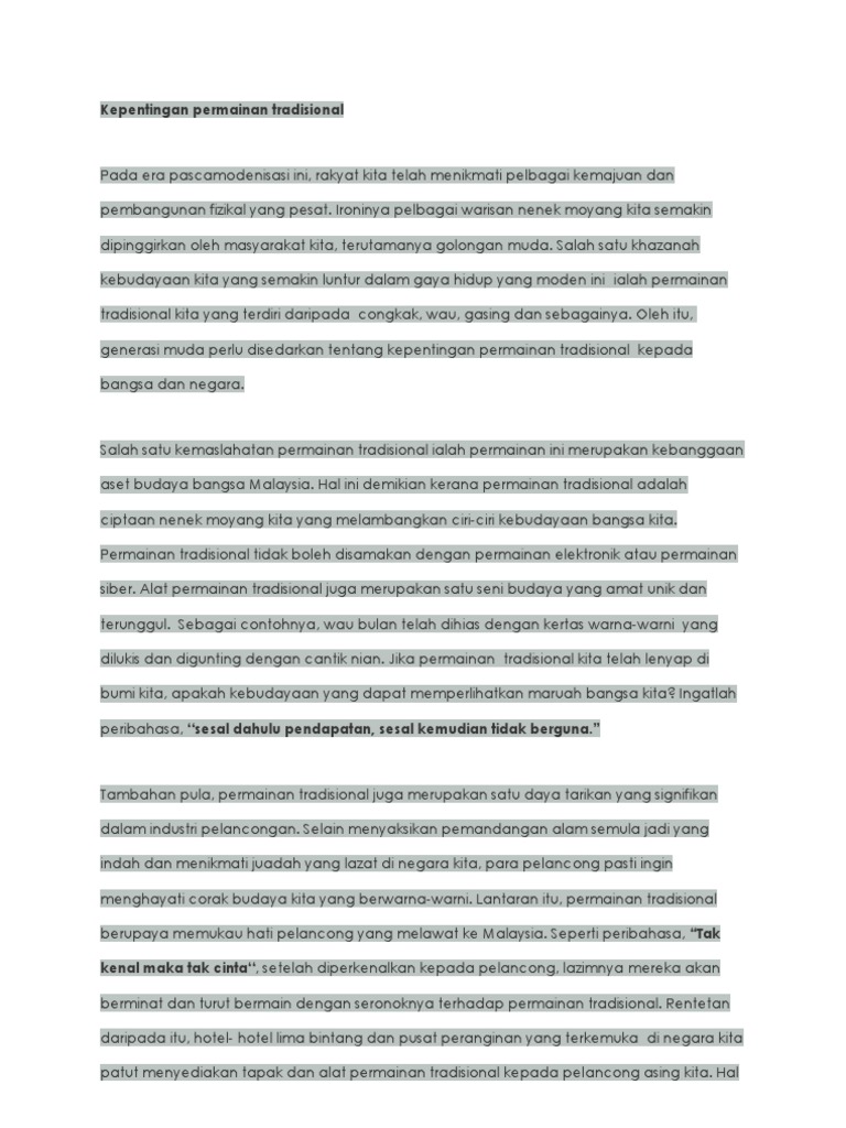 Cikgu Sabar Mohd Karangan Tingkatan 3 Permainan Tradisional