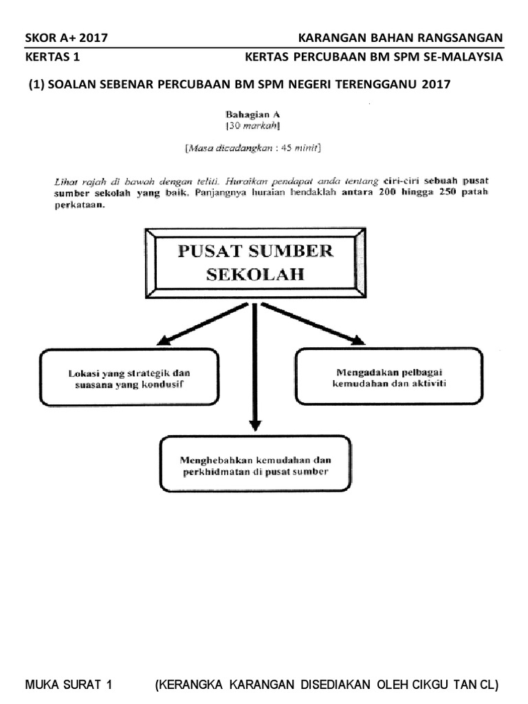 Kertas Percubaan Bm Spm Se Malaysia 1 Soalan Sebenar Percubaan Bm Spm Negeri Terengganu 2017 Kerangka Karangan Disediakan Oleh Cikgu Tan Cl Pdf Download Gratis