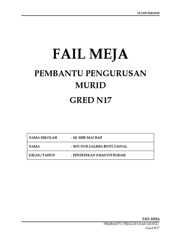 Fail Meja Jawatan Pembantupengurusanmurid Unit Prasekolah Bahagian