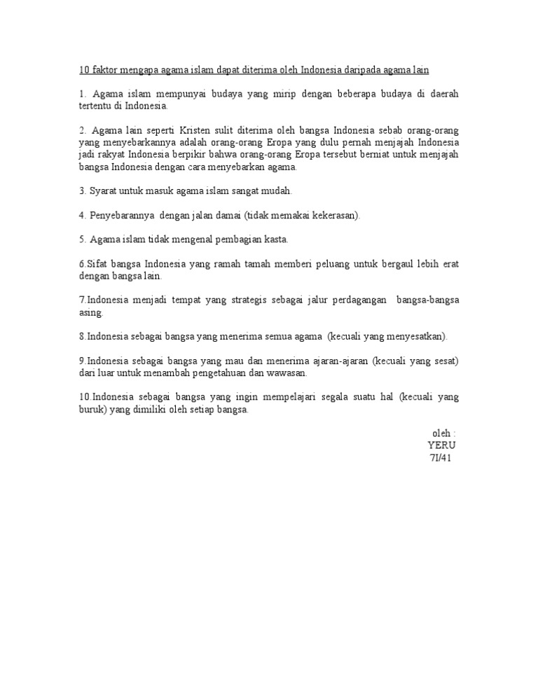Faktor Utama Yang Menyebabkan Agama Islam Dapat Diterima Dan Berkembang Pesat Di Indonesia Brainly Co Id