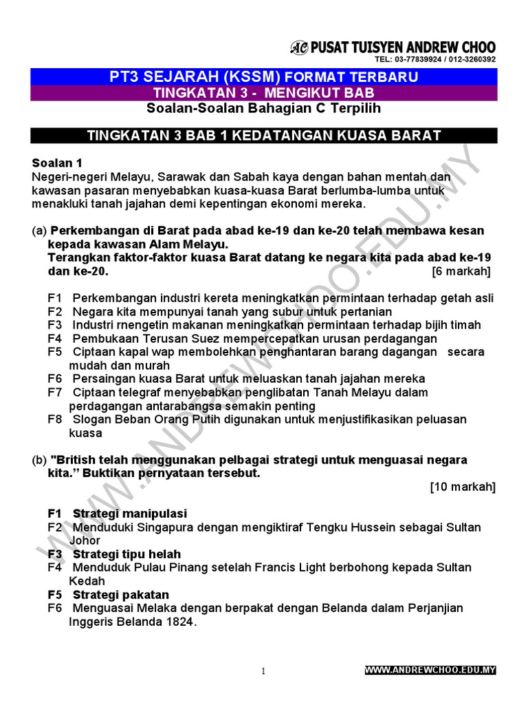 Tingkatan 3 Sejarah Contoh Soalan Bahagian C Kssm 2019