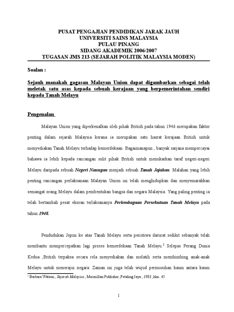Doc Bab 2 Malayan Union Dan Persekutuan Tanah Melayu Nazhif Wan Yusoff Academia Edu