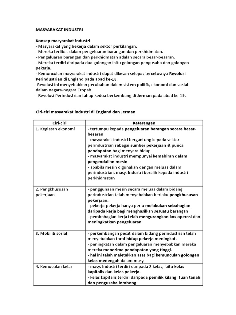 Blog Sejarah Stpm Cikgu Mohammadia 1 4 Masyarakat Industri