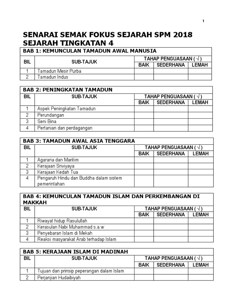 Senarai Semak Fokus Sejarah Spm 2018 Sejarah Tingkatan 4