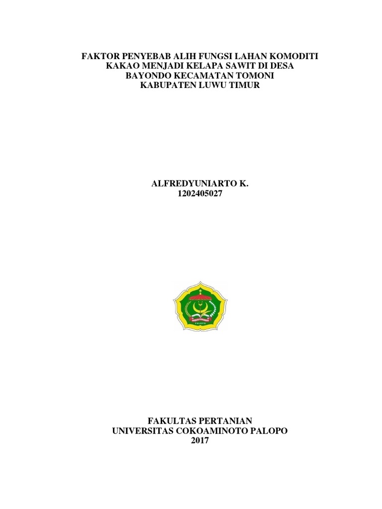 Faktor Yang Mempengaruhi Alih Fungsi Lahan Pangan Menjadi Kelapa Sawit Di Bengkulu Kasus Petani Di Desa Kungkai Baru Pdf Download Gratis