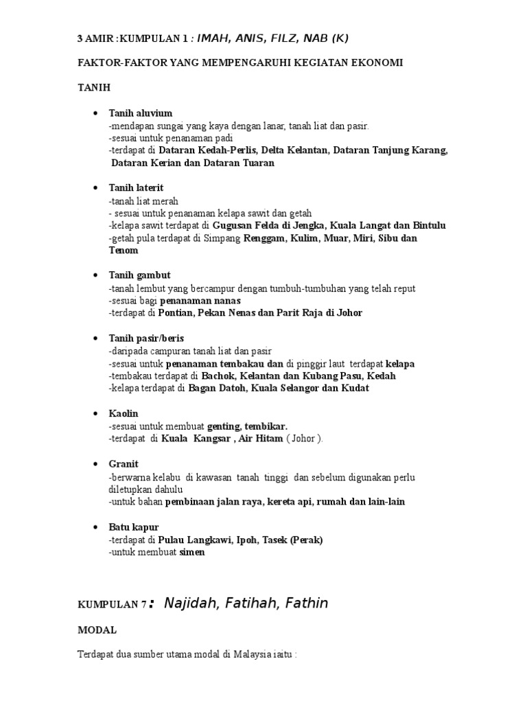 Faktor Mempengaruhi Kegiatan Ekonomi Di Malaysia Sumber Pengajaran