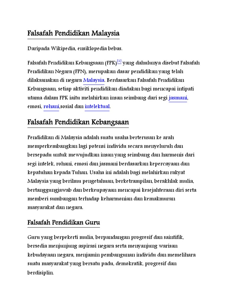 Pdf Falsafah Pendidikan Kebangsaan Norelyana Ali Academia Edu