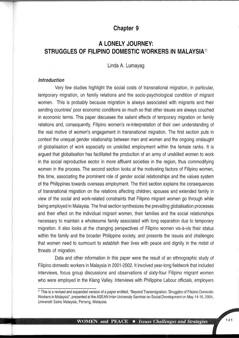 A Lonely Journey Struggle Of Filipino Domestic Workers In Malaysia