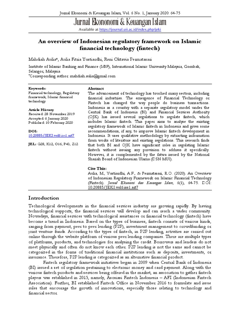 Pdf Regulatory Framework For Islamic Financial Institutions Lesson Learnt Between Malaysia And Indonesia