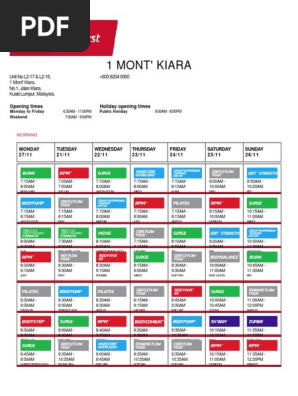 Fitness First Mont Kiara Timetable
