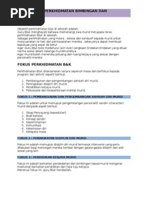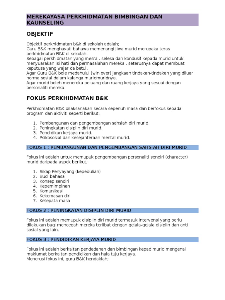 Merekayasa Perkhidmatan Bimbingan Dan Kaunseling Objektif Fokus 1 Pembangunan Dan Pengembangan Sahsiah Diri Murid
