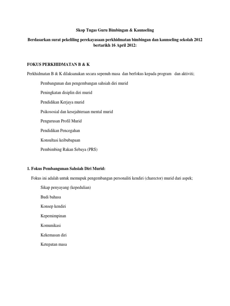 Skop Tugas Guru Bimbingan And Kaunseling Docx