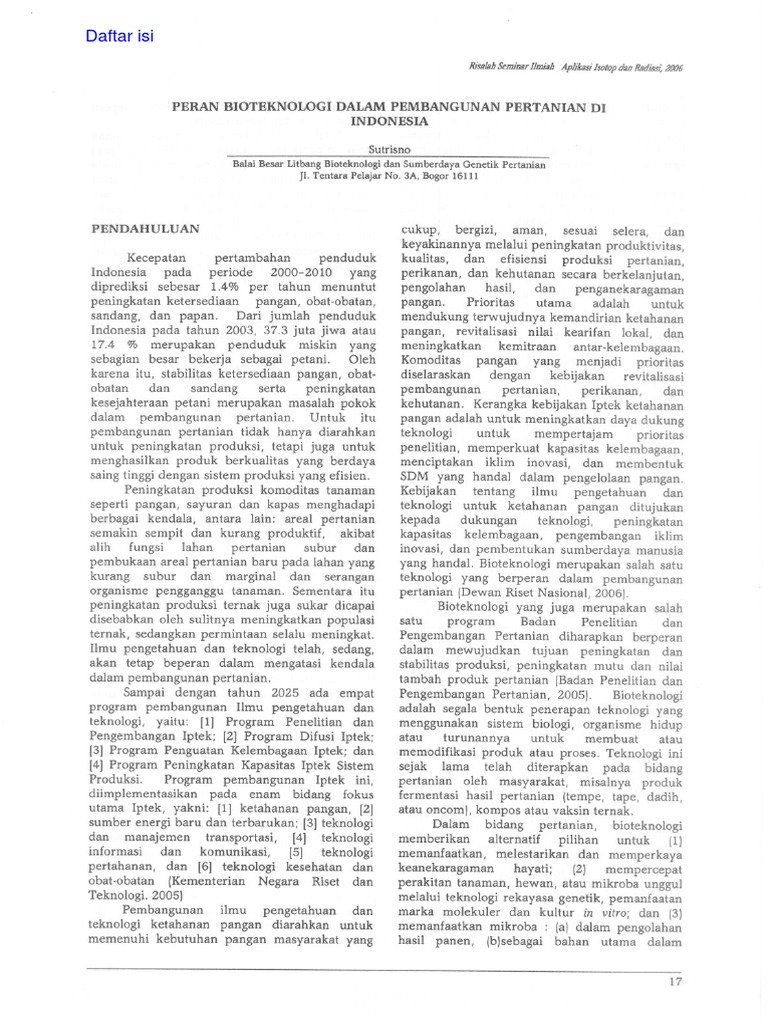 Peran Bioteknologi Dalam Pembangunan Pertanian Di Indonesia Sutrisno Pdf Free Download