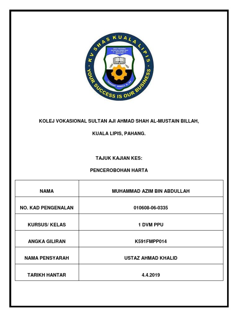 Islam Dan Hak Milik 2 Docx Kolej Vokasional Melaka Tengah Kajian Kes Pengajian Islam Mpu 2312 Nama Abdul Danish Darwisy Bin Rasli Krusus 1 Dete No Ic Course Hero