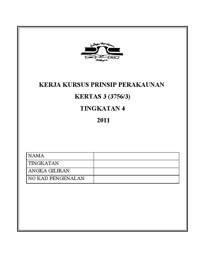 Kerja kursus prinsip perakaunan tingkatan 4 tahun 2016 untuk rujukan spm tingkatan 4 dan 5 soalan peperiksaan nota jawapan latihan rujukan spm tingkatan 4 dan 5.