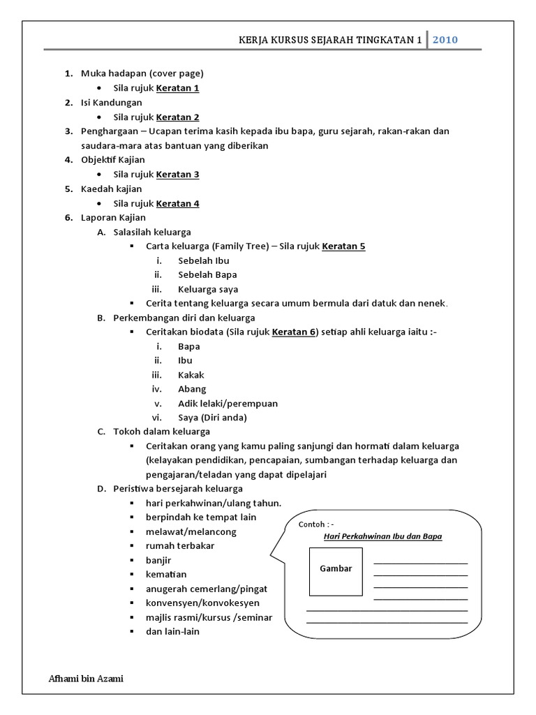 Belajar Bersama Cikgu Latifah Kerja Kursus Sejarah Tingkatan 1 Sejarah Diri Dan Keluarga