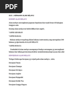 Nota Sejarah Tingkatan 2 Bab 1 Kerajaan Alam Melayu