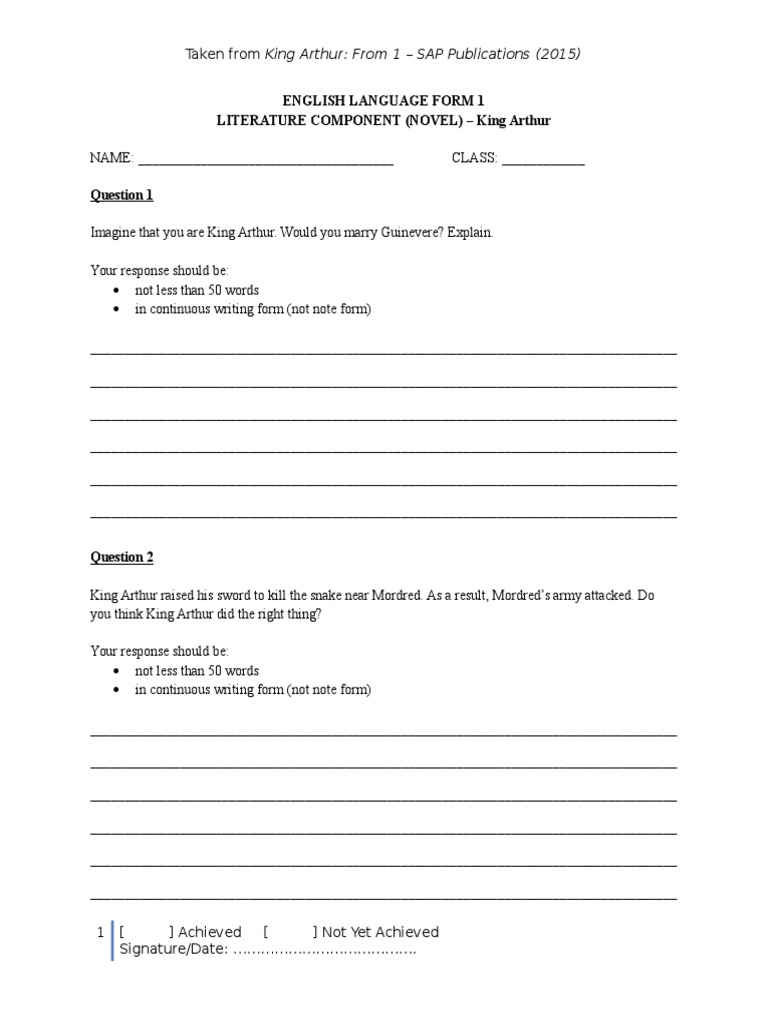 Form 1 Literature In English Novel Welsh Folklore King Arthur