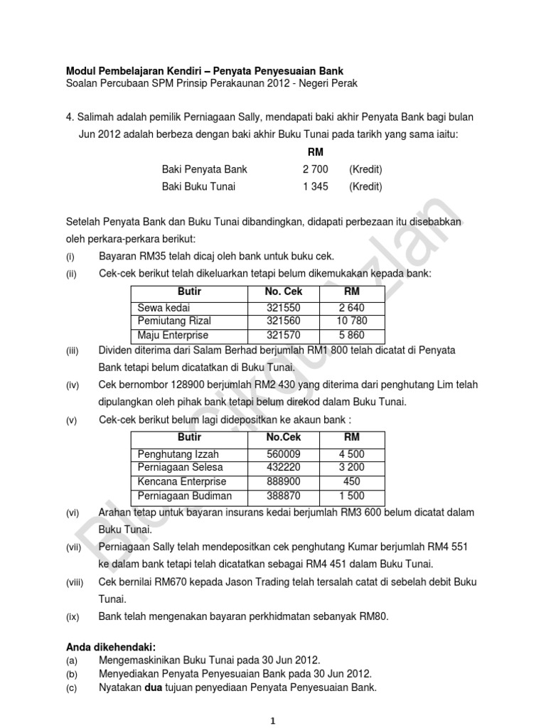 Akaunomi Bab 1 Penyata Penyesuaian Bank Ppb Ulangkaji