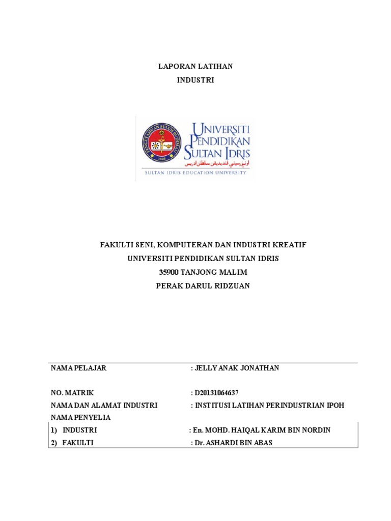 Laporan Latihan Industri Diploma Rekabentuk Industri