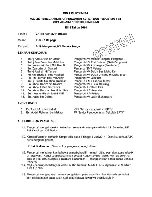Contoh Minit Mesyuarat