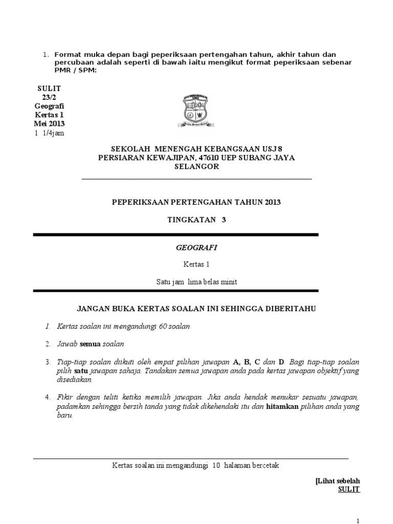 Contoh Format Muka Depan Soalan Kertas 1 Peperiksaan Percubaan Spm 2013 Sedaka Matematik2