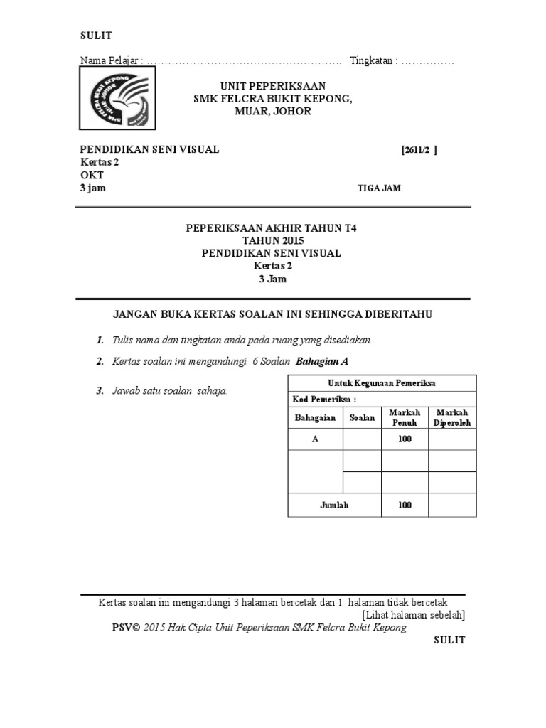 Contoh Muka Depan Soalan Bm Pt3 Soalan Aw