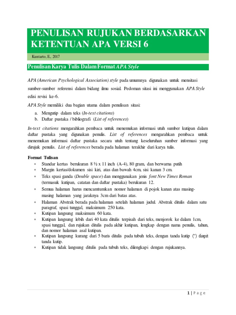 Http Rachmatkriyantono Lecture Ub Ac Id Files 2019 09 Sistem Pengutipan Referencing Apa Edisi 6 Pdf