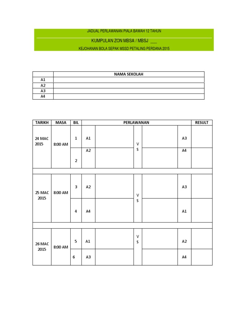 Jadual Kosong Bg 4 Pasukan