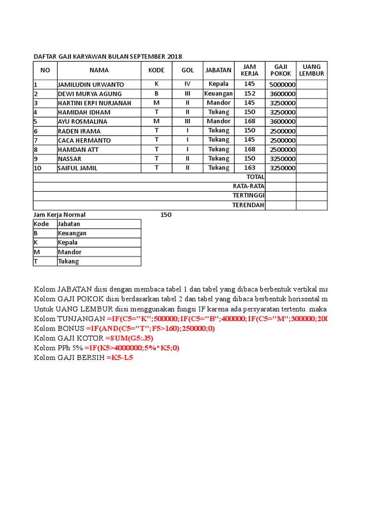 Gaji Bulan September 2018
