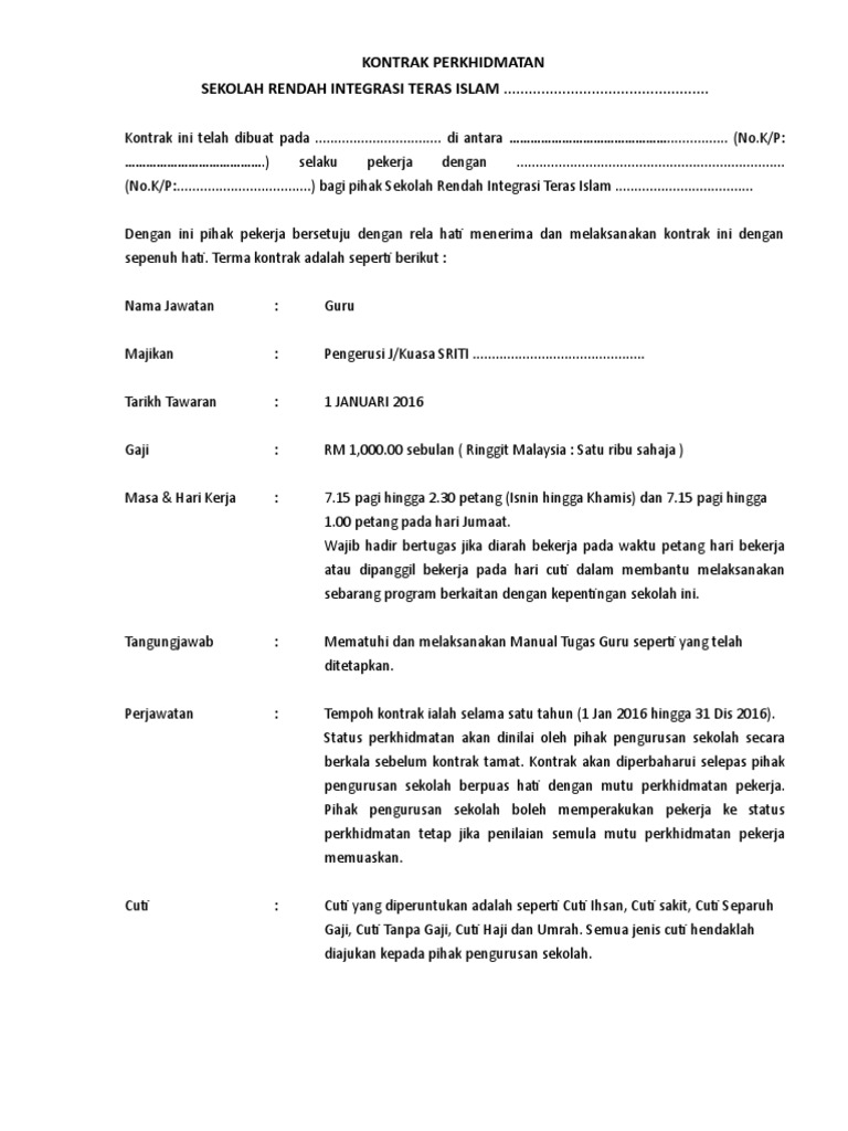 Kontrak Perkhidmatan Guru Sriti