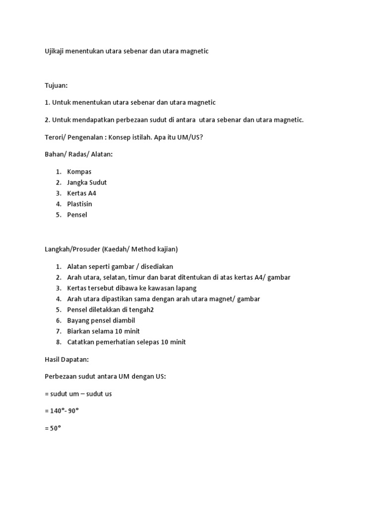 Ujikaji Menentukan Utara Sebenar Dan Utara Magnetic