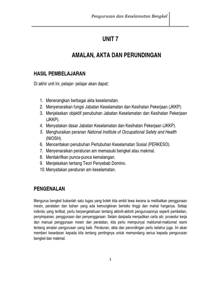 Unit 7 Organisasi Dan Keselamatan Bengkel Pdf Document
