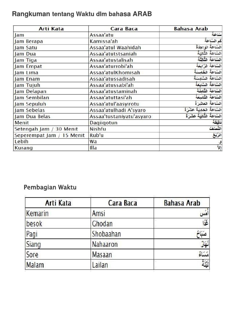 Bahasa Arab Bilangan Jam Dan Waktu Kamus Mufradat