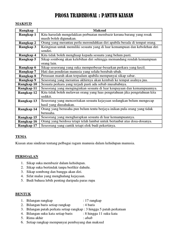 Pantun Budi K Maksud Tema Persoalan Bentuk Gaya Bahasa Nilai Pengajaran Bumi Gemilang